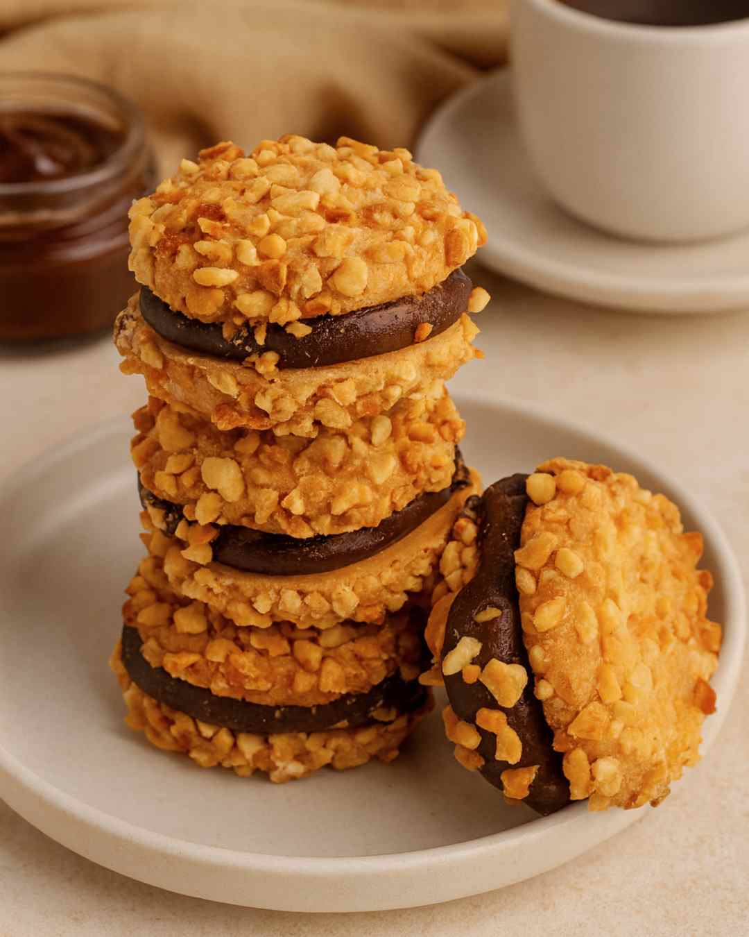 Pessoas com alergias a castanhas ou glúten devem verificar os ingredientes antes de consumir.