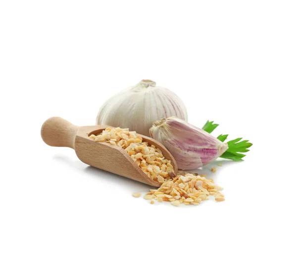Alho granulado é um produto obtido a partir de alho desidratado e granulado. é utilizado para temperar pratos, molhos e sopas com sabor intenso.
