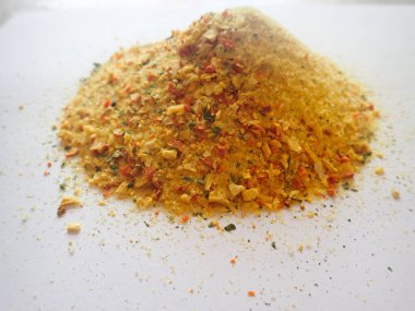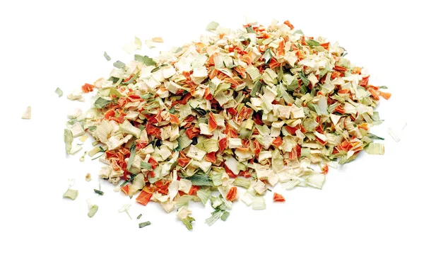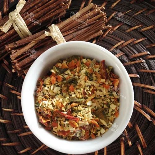 Flocos desidratados de cebola, alho, cenoura, tomate, pimentão, cebolinha e salsa