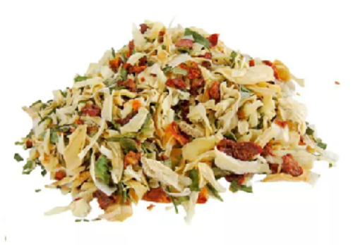 Flocos desidratados de cebola, alho, cenoura, tomate, pimentão, cebolinha e salsa