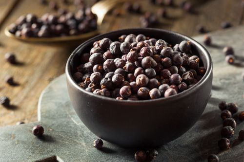Culinária: Realça o sabor de carnes de caça, porco, aves, patês, marinadas e molhos. É o ingrediente principal que dá aroma ao gim.